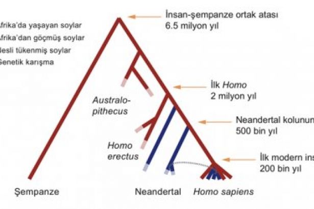 İki milyon yıl önce ortaya çıkan bu insanımsılar, zaman içinde Afrika’dan eski dünyaya yayıldılar. Asya’da ve Avrupa’da Homo erectus, Homo heidelbergensis, Homo floresiensis veya Homo neanderthalensis gibi isimler verilen bu insanımsıların fosilleri, modern insan (Homo sapiens) kemiklerinden önemli farklar taşıyor: Kimi kısa, kimi daha büyük veya daha küçük beyinli, kiminin kaburgaları günümüz insanlarında görülmeyen biçimde… Ancak hepsi de iki ayaklı, taş âlet kullanıyor ve çeşitli anatomik özellikleri, şempanzeye kıyasla bize çok daha yakın.
