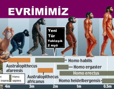.Evrim; anatomi, embriyoloji, biyomekanik, demografi, ekoloji, arkeoloji, jeoloji, jeomorfoloji, etoloji, genetik, paleontoloji, moleküler biyoloji ve osteoloji gibi kökleri karmaşık bir biçimde biyolojiye ve jeolojiye bağlı olan dalların oluşturduğu, kendi yöntemleriyle özgün bir araştırma-inceleme alanıdır. Ancak bu çoklu bilim ortaklığının bileşimi, evrimi en doğru biçimde anlamamızı sağlar. Bu yazıda insanın diğer canlılar gibi evrimleşerek hayatta kaldığını ve salt bugünkü görünümü ile var olmadığını bir kez daha fosil keşiflerle gözler önüne seriyoruz.
