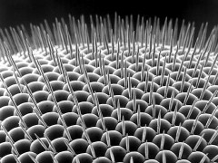 Rasterelektronenmikroskop-Aufnahme des Facettenauges einer Taufliege (Quelle: Dartmouth College)