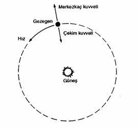 eşitliği ile verilir. Bu eşitlikte m kütleyi, v dönme hızını, r ise dönme eksenine olan uzaklığı gösterir. Açısal momentumun korunumu ilkesine göre (tıpkı bir buz patencisinin kollarını iki yana bitiştirdiğinde daha hızlı dönmesi gibi), yarıçapı küçüldükçe bulutun dönme hızı arttı, (Şekil 1). Artan dönme hızı Nebulayı oluşturan maddelerin hareketlerini etkileyecek bir başka kuvveti de ortaya çıkardı. Bu kuvvet arabada keskin bir virajı alırken hissettiğimiz merkezkaç kuvvetidir. Bir gezegen, gezegenle Güneş arasındaki kütle çekim kuvveti ve gezegenin Güneş çevresindeki dönüşünün neden olduğu merkezkaç kuvveti sayesinde yörüngede kalır (Şekil 2).