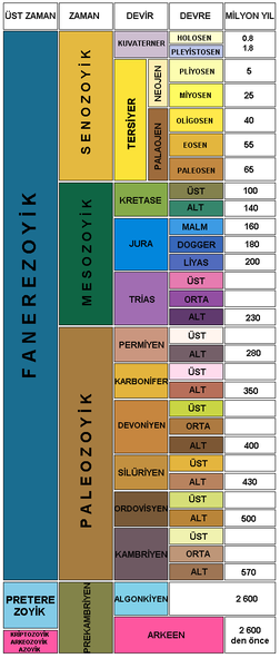 JEOLOJİK ZAMAN ÇİZELGESİ