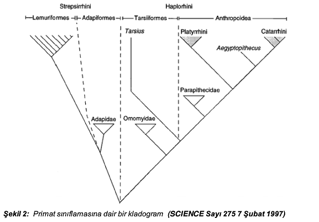 Şekil 2: Primat sınıflamasına dair bir kladogram (SCIENCE Sayı 275 7 Şubat 1997)