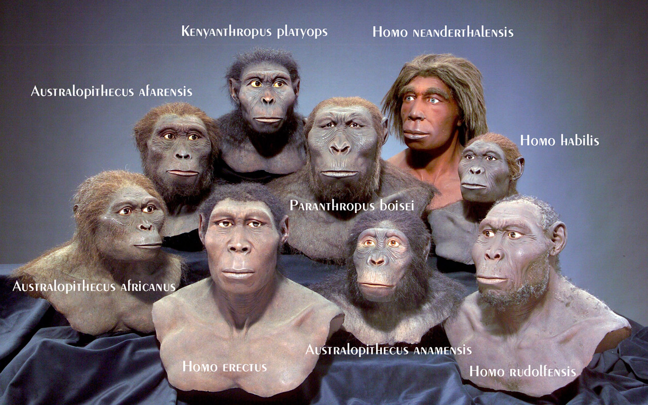 Kimilerine göre ilk insanımsılardan Homo habilis’in günümüzden 2,1-1.5 milyon yıl önce, sadece doğu Afrika’da yaşamış ve 650 cm3 civarında bir beyin hacmine sahip olduğunu biliyoruz. Bazı araştırmacılar bu türü Australopitek gurubunun devamı olarak görmektedirler. İlk kez 1,8 milyon yıl kadar önce görülen Homo erectus ise ortalama 935 cm3 civarında bir beyin hacmine sahip. Bu türler 500 milyon yıllık bir süreçte ot ve meyvaların yanında bazı böcek ya da yakalayabildikleri küçük hayvanlarla da beslenerek yaşamışlardır. Ancak Homo erectus’un zamanla giderek geliştiğini, ateşi ve taş aletleri kullandığını, mağarada yaşadığını, avlandığını ve etçil beslenmeye başladığını biliyoruz. Bu gelişim sayesinde midir tam bilinmez, Homo erektus Afrika’dan çıkarak yeryüzüne yayılmıştır. Java’da ve Çin’de, Avrupa’da ve Cezayir’de Homo erectus fosilleri bulunmuştur.