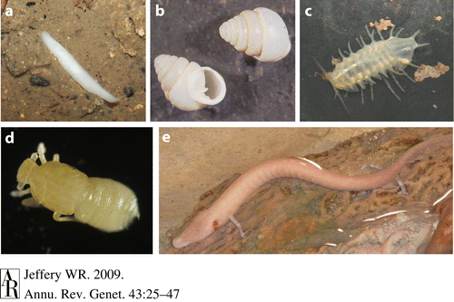Mağaraya giren bir hayvan, ışıkla karşılaşamayacağı için, taşıdığı göz ve renk önemini yitirir. Bu nedenle gözlerin ve renklerin yitirilmesini sağlayacak mutasyonlar desteklenir. Böylece, bir zaman sonra, gözsüz ve renksiz bireyler ortaya çıkar. Keza yeni mutasyonlarla, gözün yerine, diğer etkin his organları (yetkin bir koku ve tat alma organı) geliştirilir.