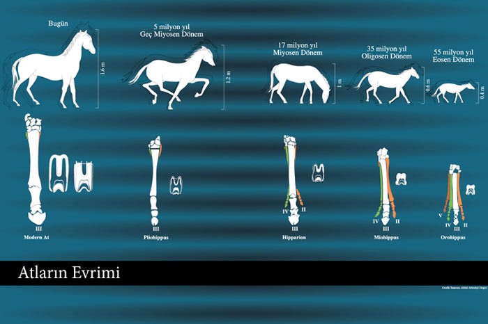 Yaklaşık 55 milyon yıl önce ilk kez 40 cm boyları ile dört tırnaklı olarak Afrika’da ortaya çıkan bugünkü atların 11 Milyon yıl önceki ataları Anadolu’da ilk kez görülmeye başlandı.