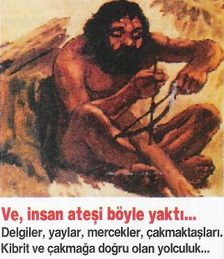 İleri teknolojiye doğru atılan ilk ve en önemli adım, hiç kuşkusuz ateşin kontrol edilebilmesiydi… İlk insan için ateş, kendilerine sadece yıldırım, orman yangını ve lav şeklinde sunulan kutsal bir armağandı… Kendileri ateş yakamadıklarından, ilk insanlar yavaş yanan kütüklerle ya da kaplardaki odunkömürüyle ateşi sürekli canlı tutuyorlardı.