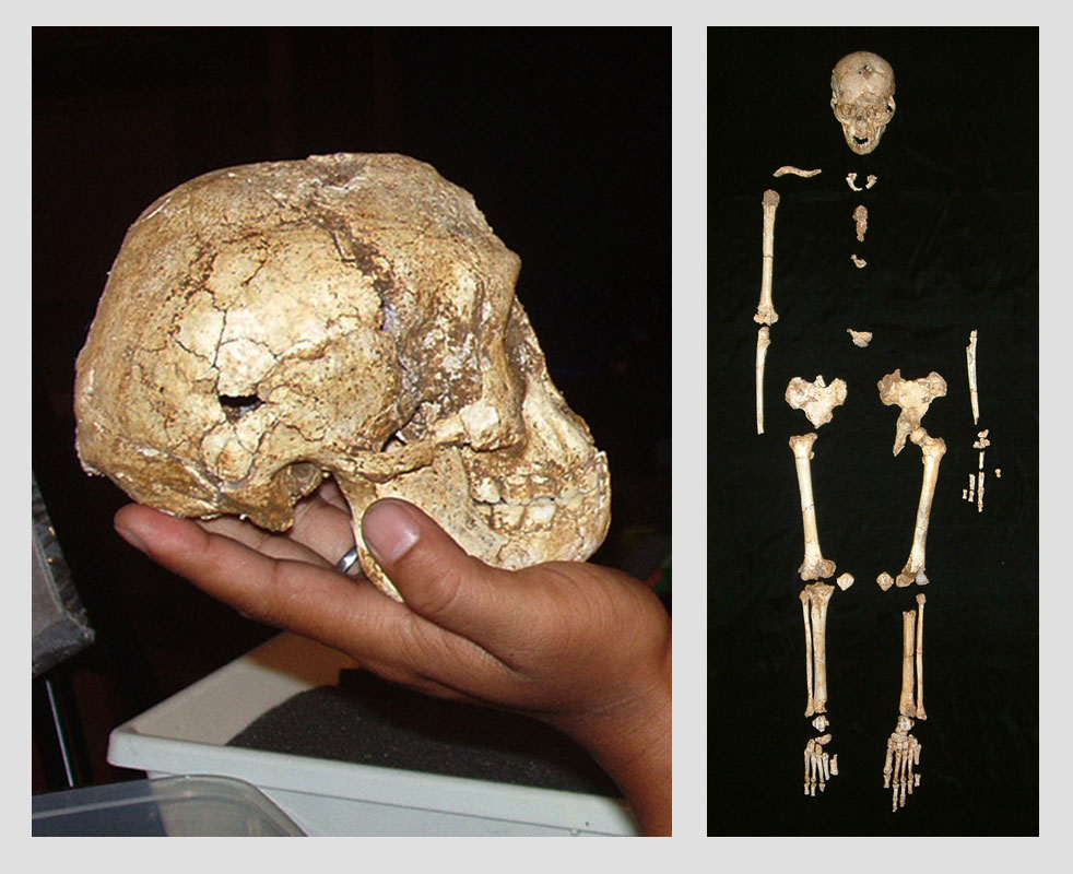 Brown ve arkadaşları Avustralya ve Asya’da homininlerin tarih öncesini inceleyen geniş kapsamlı bir proje çerçevesinde Liang Bua’da çalışıyorlardı. 2003 Eylül’ünde hiç bozulmamış bir kafatası, alt çene, kalça kemiği ve sağ bacaktan oluşan bir iskeleti kısmen ortaya çıkartınca daha ciddi bir şeyin peşinde olduklarını fark ettiler. Ekip bulunan yaratığın boyunun topu topu 105 santimetre kadar olduğunu görünce önce bunun bir çocuğa ait olabileceğini düşündüler.