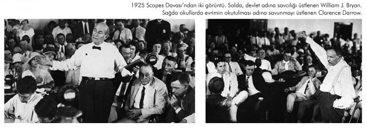 1) Scopes Davası: Dyton’da (Tennessee) 10 Temmuz 1925’te başlayan, 21 Temmuz 1925’te sona eren yargılama. 20. yüzyıl ABD tarihinin kamuoyunun en yoğun ilgisini çeken hukuk davalarından biriydi. İddia edilen suç, Dayton’da Rhea lisesinin bilim öğretmeni John Thomas Scopes’un, okullarda evrim kuramını anlatmayı yasaklayan Tennessee eyalet yasasını çiğnemiş olmasıydı.