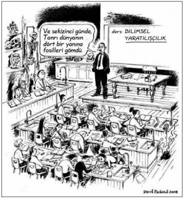 “Bilimsel yaratılışçılık, yanlışlığının kanıtlanması kesinkes imkânsız olduğu için, kendi kendiyle çelişen, saçma bir deyimdir. Bildiğim her evrimci kuramın yanlış olduğunu kanıtlayacak gözlemler ve deneyler tasavvur edebilirim, ama olası hangi verilerin yaratılışçıları inançlarını bırakmaya yöneltebileceğini düşünemiyorum. Yenilmez olan sistemler bilim değil, dogmadır. Yüksekten konuşan biri gibi görünmemek için, yaratılışçılığın önde gelen düşünürü felsefe doktoru Duane Gish’in son kitabı Evolution? Fossils Say No!’dan (‘Evrim mi? Fosiller Hayır Diyor!’) alıntı yapayım: “Yaratılışla biz, temel hayvan ve bitki türlerinin doğaüstü bir yaratıcı tarafından birdenbire ya da emirle yaratıldığını kastederiz. Yaratanın nasıl yarattığını, hangi süreci kullandığını bilmiyoruz, çünkü şimdi doğal evrende işlemeyen süreçleri kullanmıştır [italikler Gish’in]. Yaratılışa özel yaratılış dememizin nedeni budur. Yaratan tarafından kullanılan yaratma süreçleri konusunda bilimsel araştırmalarla hiçbir şeyi keşfedemeyiz.” O halde Dr. Gish, ne olur şu son cümlenizin ışığında neyin bilimsel yaratılışçılık olduğunu söyler misiniz?