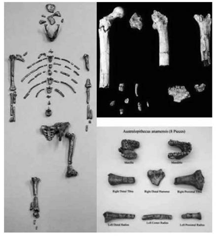 Üçüncü kanıt, daha doğrudandır: bir durumdan ötekine geçişler çoğunlukla fosil kayıtlarında bulunur. Korunmuş geçişler yaygın değildir, bizim evrim anlayışımıza göre zaten öyle olmaması gerekir. Ama yaratılışçıların çoğunlukla iddia ettikleri gibi, tümüyle yok da değildir. Sürüngenlerin altçenelerinde birkaç kemik bulunur, memelilerin altçenelerinde ise tek bir kemik vardır. Memeli olmayanlara has çene kemikleri, memeli atalarında çene kemiğinin arkasına konumlanmış minik yumrucuklar durumuna gelinceye kadar, adım adım küçülmüştür. Memelilerdeki “çekiç” ve “örs” gibi kulak kemikleri bu yumrucukların torunlarıdır. Yaratılışçılar, “böyle bir geçiş nasıl tamamlanabildi?” diye soruyorlar. Bir kemik kesinlikle ya çenede ya da kulaktadır. Buna karşılık paleontologlar, therapsid’lerin (memeli benzeri sürüngen) iki geçiş soyunu keşfetmiştir ki bunlarda, biri çok geçmeden çekiç ve örs kemikleri olacak eklem kemiklerinden ve eski dördülden, öteki (modern memelilerde) olduğu gibi dentary ve squamosal kemiklerden oluşan ikili bir çene kemikleri bulunmaktadır. Hoş bu konuyla ilgili, Australopithecus aferensis’ten, insansı maymununkine benzer damak yapısına, insan dik duruşuna ve aynı ağırlıktaki bir insansı maymunun kafatasından daha büyük ama bizimkinden tam 1000 cm3 küçük olan bir kafatası hacmine sahip olan o en eski insandan daha iyi bir geçiş formu ne olabilir ki? Çok eski kayalarda keşfedilmiş yarım düzine insan türünden her birini Tanrı yaratmışsa, gitgide daha bugünküne yaklaşan özellikleri -artan kafatası hacmini, küçülmüş yüz ve dişleri, daha iri vücudu- niçin zamanın akışı içinde ardışık olarak yarattı ki? Evrimi taklit etmek, bu yolla bizim inancımızı sınamak için mi?