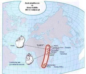 Diğer türlere araştırmacılar “Australopithecus” (Doğu Afrika Maymunu) ile başlayan isimler verdiler. HOMO cinsinin bu erken örneğinin yaklaş ık 2,5 milyon yıl öncesinde oluştuğu tahmin ediliyor.