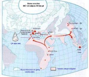 İnsanın Afrika’dan dünyanın diğer yanlarına ilk yayılması yaklaşık “1,8 milyon yıl önce HOMO ERECTUS ile başlıyor. HOMO ERECTUS ve onun devamı olan değişik insanlar örneğin HOMO HEIDELBERGENSİS (bu insanlara “arkaik sapiensler” de denilmektedir.)  milyonlarca yıl Afrika, Asya, Avrupa ve Avustralya kıtalarında çeşitli insan türleri oluşturdular (Pekin Adamı, Cava Adamı vb.).