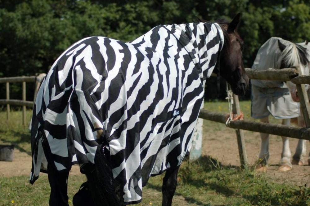 Teoriyi test etmek için araştırmacılar atların üzerine siyah beyaz çizgili örtüler serdi ve tek renkli örtü serilen atlara kıyasla çizgili atların üzerine sineklerin daha az konduğunu buldu.