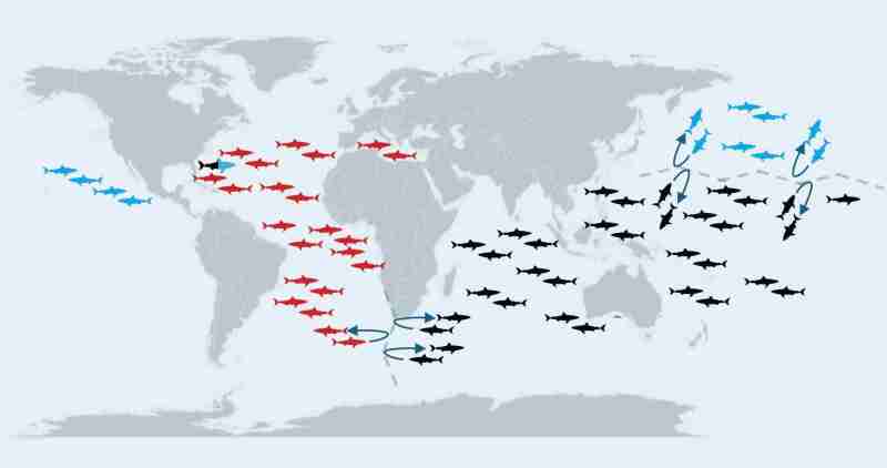 89 köpekbalığının genetiğini inceleyen bilim insanları, hayvanların üç ayrı gruba ayrıldığını tespit etti. Bu gruplar Kuzey Atlas/Akdeniz, Hint-Pasifik ve Kuzey Pasifik okyanuslarında geziniyor.