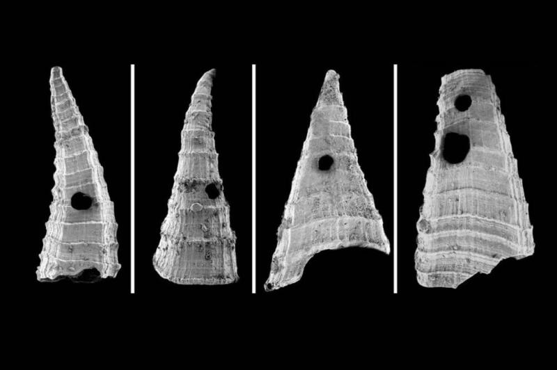 Araştırmacılar, örneklerin üstündeki deliklerin konumu ve incelenen tüm kabukların aynı yerinde bulunmaları nedeniyle delikleri, avcı bir hayvanın açtığını düşünüyor.